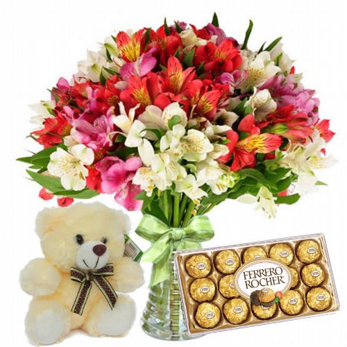 1 Lindo Arranjo de Astromelias coloridas no vaso.